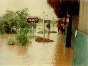 โดยในช่วงแรก ได้ทำการปลูกสร้างอาคารที่ทำการกองกำกับการฯ ขึ้นเป็นการชั่วคราวเนื่องจากในขณะนั้นพื้นที่ยังไม่ได้รับการพัฒนา จนกระทั่งเดือน สิงหาคม ๒๕๓๑ เกิดพายุฝนตกหนักทำให้น้ำท่วมอาคารที่ทำการชั่วคราวจนต้องอพยบ และขนย้ายเอกสาร และเครื่องใช้สำนักงานไปทำการที่