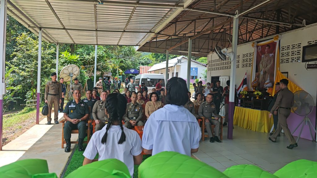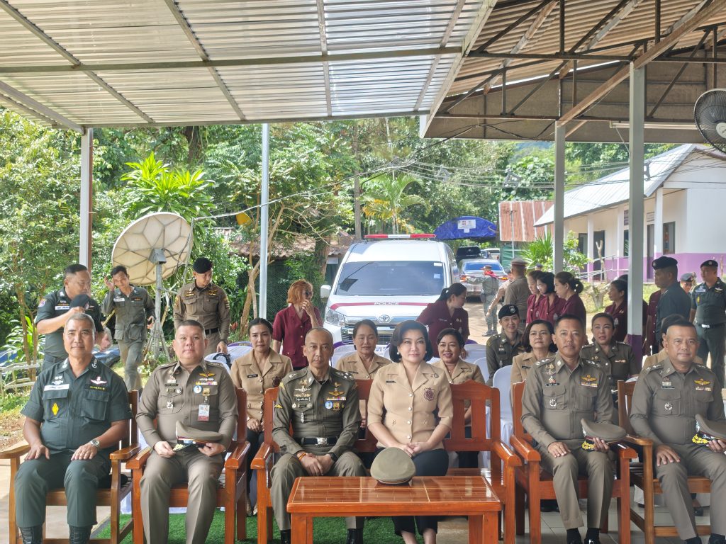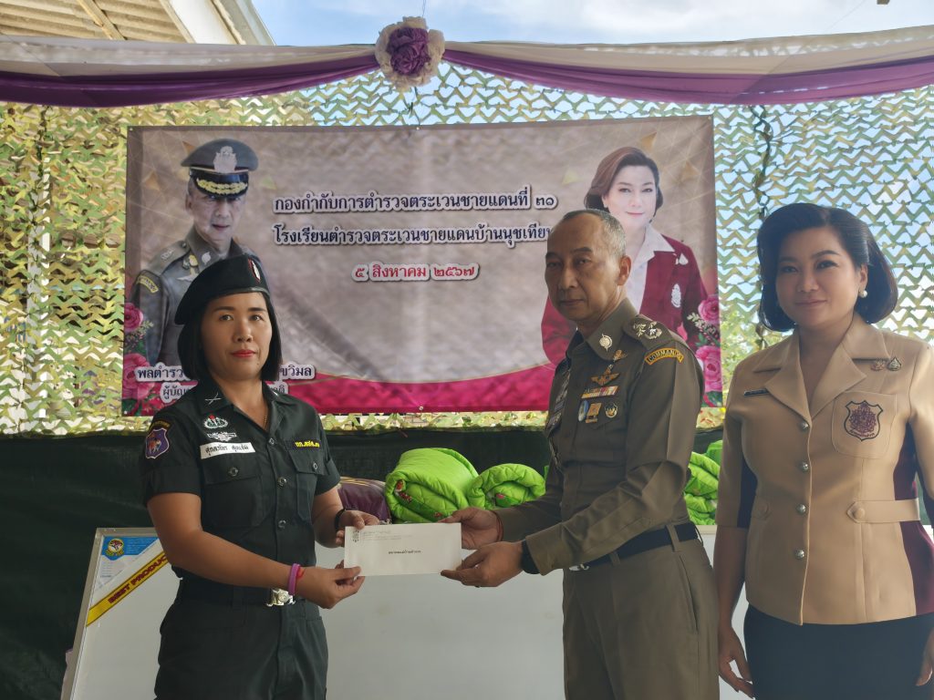 เมื่อวันที่ ๕ ส.ค. ๖๗ เวลา ๐๙.๐๐ น.พล.ต.อ.ต่อศักดิ์ สุขวิมล ผู้บัญชาการตำรวจแห่งชาติ , คุณนิภาพรรณ สุขวิมล นายกสมาคมแม่บ้านตำรวจ พร้อมด้วยคณะแม่บ้านตำรวจ ได้เดินทางมามอบสถานีโทรมาตรอัตโนมัติเพื่อตรวจวัดข้อมูลภูมิอากาศ ปริมาณน้ำฝน และระดับน้ำในพื้นที่ป่าต้นน้ำ ณ ที่ทำการอุทยานแห่งชาติภูสอยดาว จากนั้นได้เดินทางมาเยี่ยม , มอบสิ่งของและเลี้ยงอาหารกลางวันให้กับนักเรียน รร.ตชด.บ้านนุชเทียน , รร.ตชด.บ้านรักไทย , รร.ตชด.บ้านลาดเรือ ณ รร.ตชด.บ้านนุชเทียน ต.บ่อภาค อ.ชาติตระการ จ.พิษณุโลก โดยมี พล.ต.ต.วรพัฒน์ บุญมา ผบก.ตชด.ภาค ๓ , พ.ต.อ.อดุลย์ สิริสิทธินันท์ ผกก.ตชด.๓๑ , พ.ต.ท.ปรัชญลักษณ์ วิลาทัน รอง ผกก.ตชด.๓๑ , พ.ต.ท.นฤบดินทร์ สินธรานพ ผบ.ร้อย ตชด.๓๑๖ , พ.ต.ต.นฤดม ทองคุ้มภัย ผบ.ร้อย ตชด.๓๑๕ , พ.ต.ท.หญิง นฤตา พิทักษ์สกุลทอง ผบ.ร้อย ตชด.๓๑๒ ครูใหญ่และคณะครูจาก รร.ตชด.บ้านนุชเทียน , รร.ตชด.บ้านรักไทย , รร.ตชด.บ้านลาดเรือ , คณะแม่บ้าน กก.ตชด.๓๑ คณะผู้บังคับบัญชาและแม่บ้านจาก บช.ภ.๖ ให้การต้อนรับ